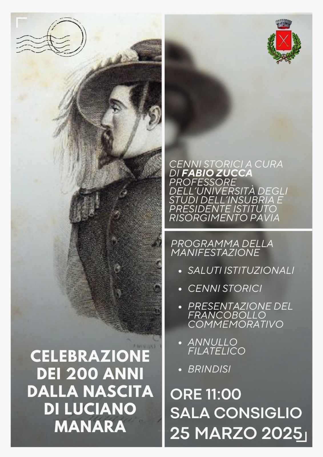 Si pubblica locandina relativa alla celebrazione dei 200 anni dalla nascita di luciano manara.
