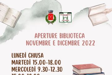 BIBLIOTECA COMUNALE C. COLLODI - Orari di apertura nei mesi di novembre e dicembre 2022