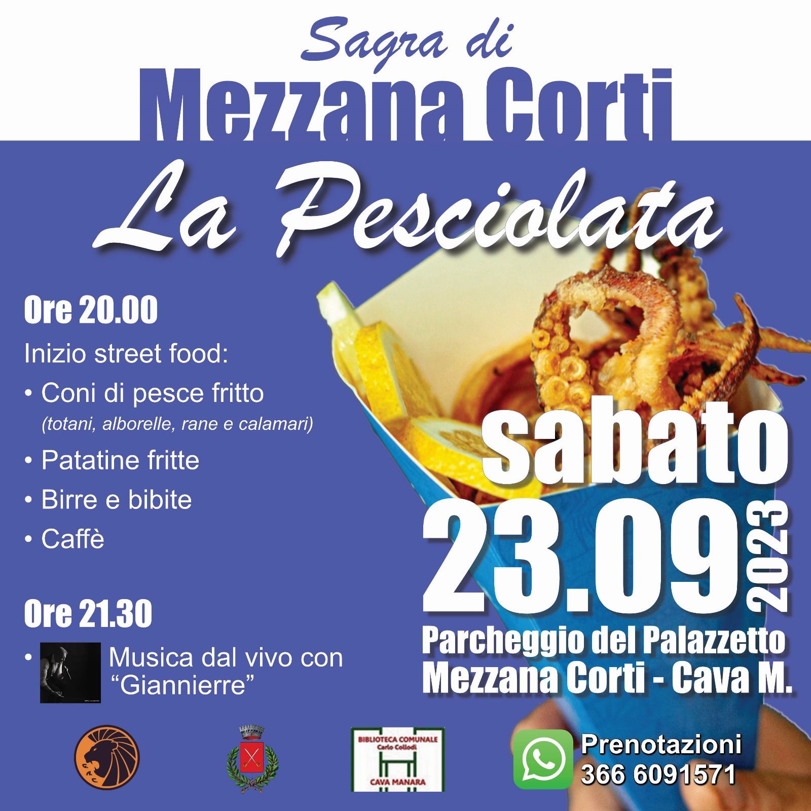 L'Amministrazione Comunale, in collaborazione con la Biblioteca "C. Collodi" e il Gruppo Animatori Cavese, organizza, nell'ambito della Sagra di Mezzana Corti 2023, l'evento "La Pesciolata" per sabato 23 settembre a partire dalle ore 20:00, presso il parcheggio del Palazzetto dello Sport.