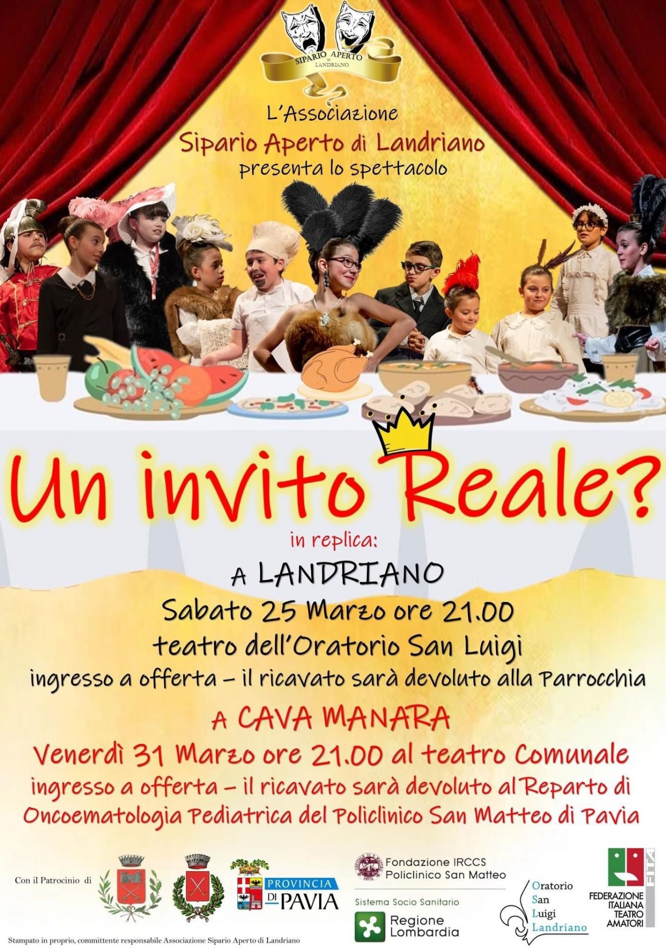 L'Associazione Sipario Aperto, con il patrocinio del Comune di Cava Manara, presenta lo spettacolo "Un invito Reale?".