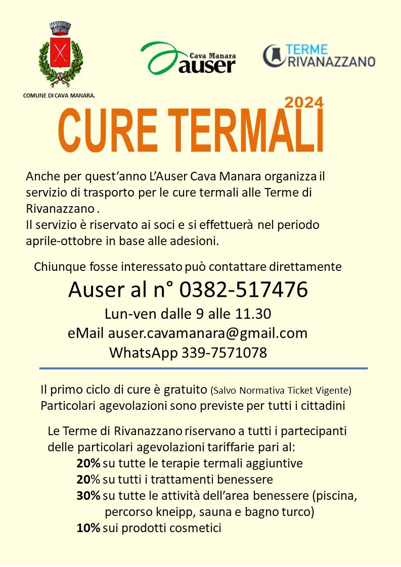 Si segnala che anche quest'anno l'Auser di Cava Manara organizza cure termali, secondo quanto specificato nella locandina allegata.