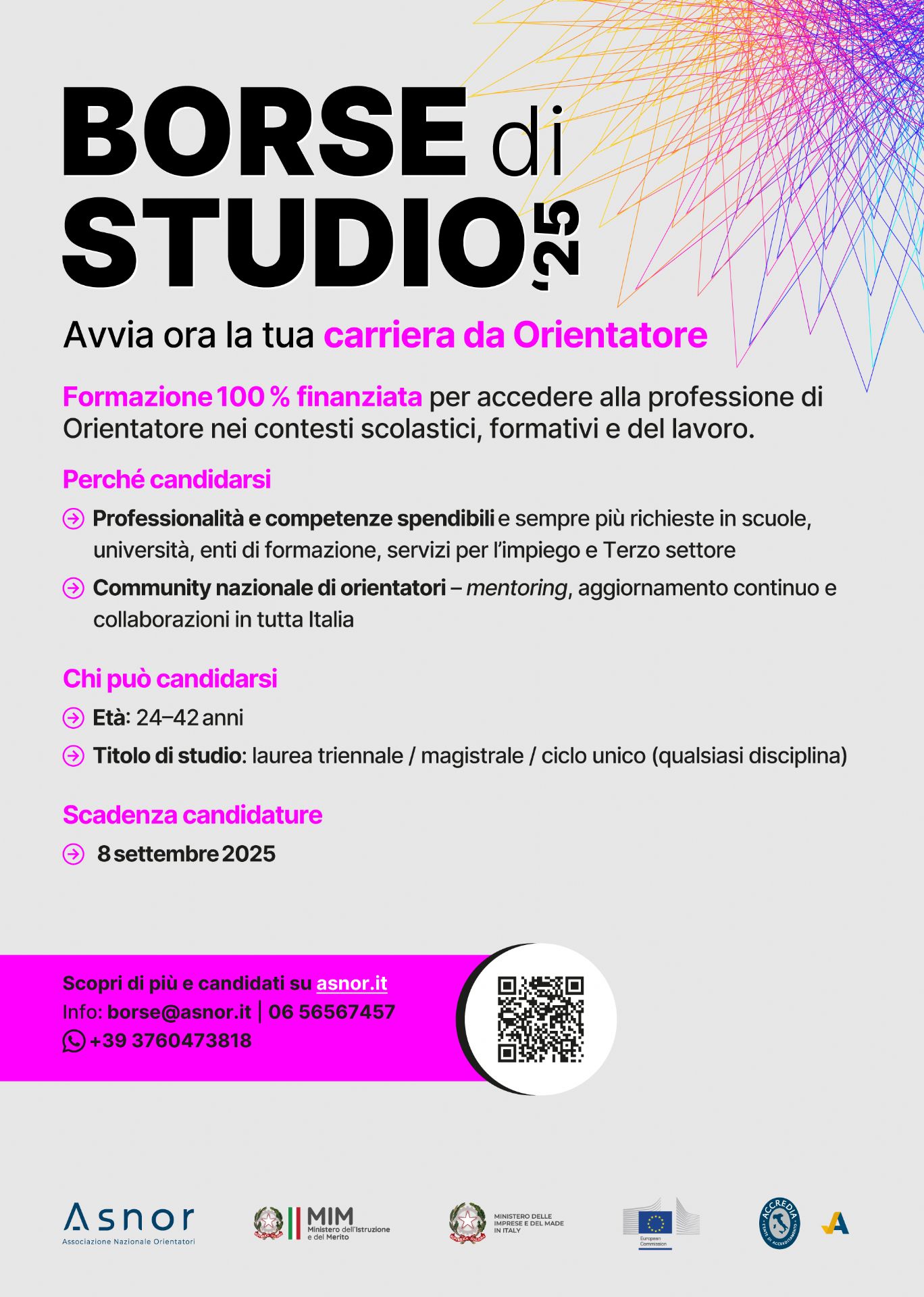 L’Associazione Nazionale Orientatori (ASNOR) promuove un Programma nazionale di 1.000 borse di studio a copertura totale, finalizzato a favorire l’accesso alla professione di orientatore nei contesti scolastici, formativi e lavorativi.