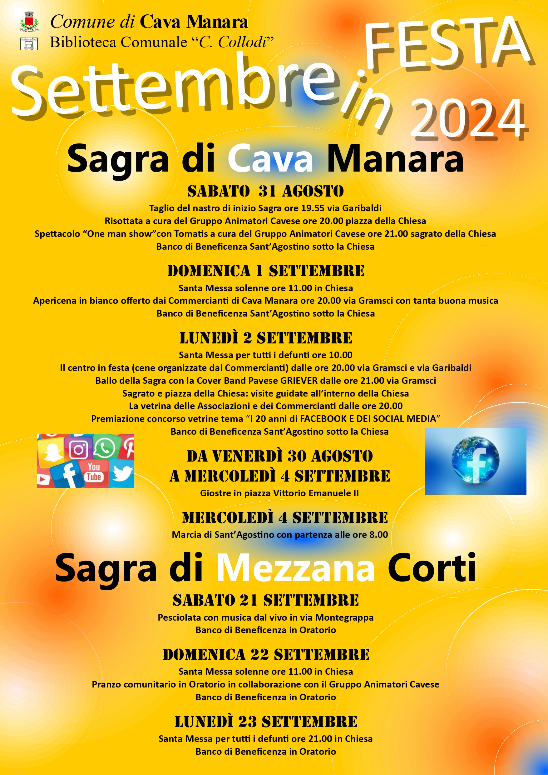 In allegato la locandina con il programma della Sagra di Cava Manara e di Mezzana Corti.