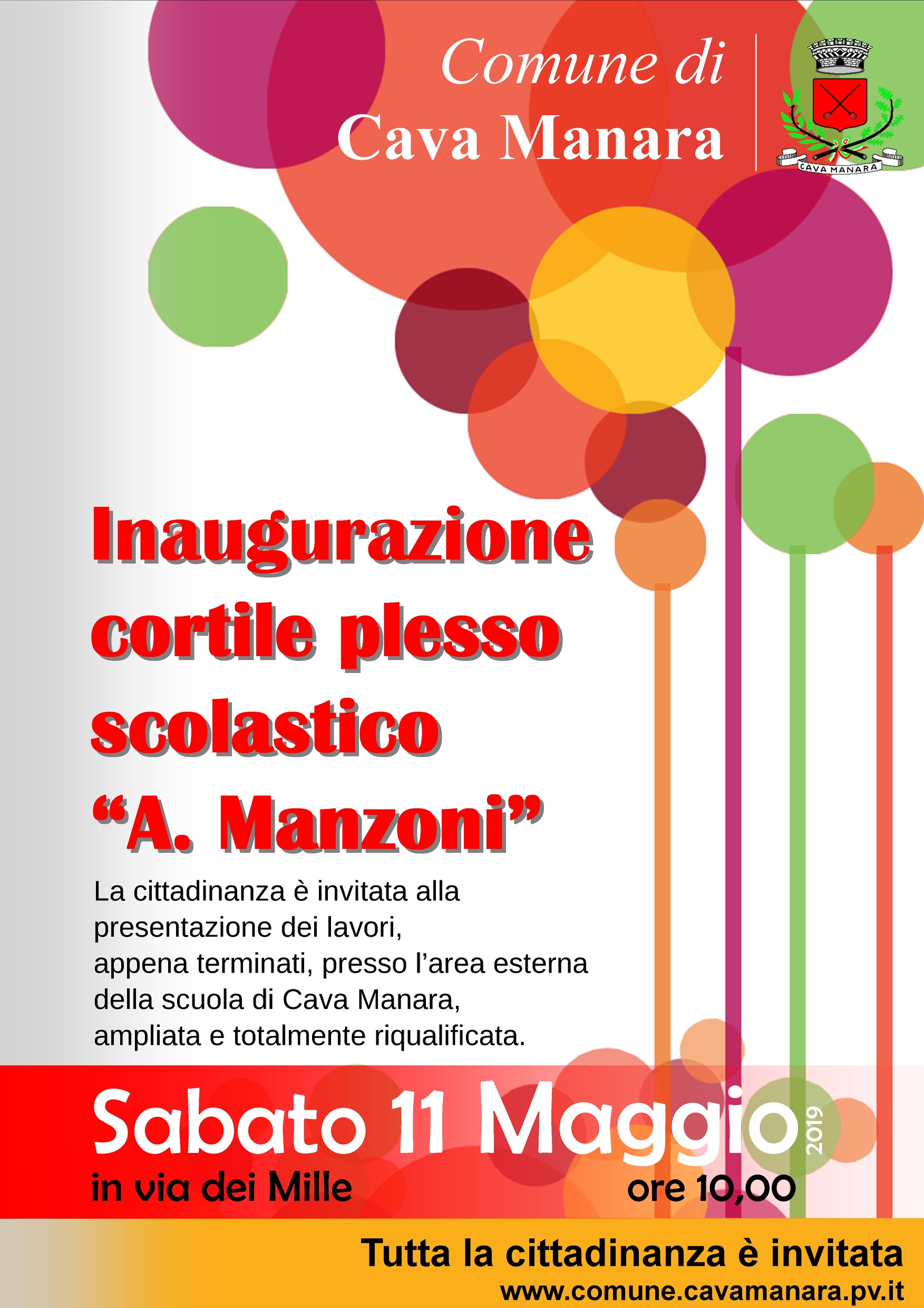 Sabato 11 maggio alle ore 10:00,verrà inaugurato il nuovo cortile dell'Istituto Comprensivo Manzoni in Via dei Mille.