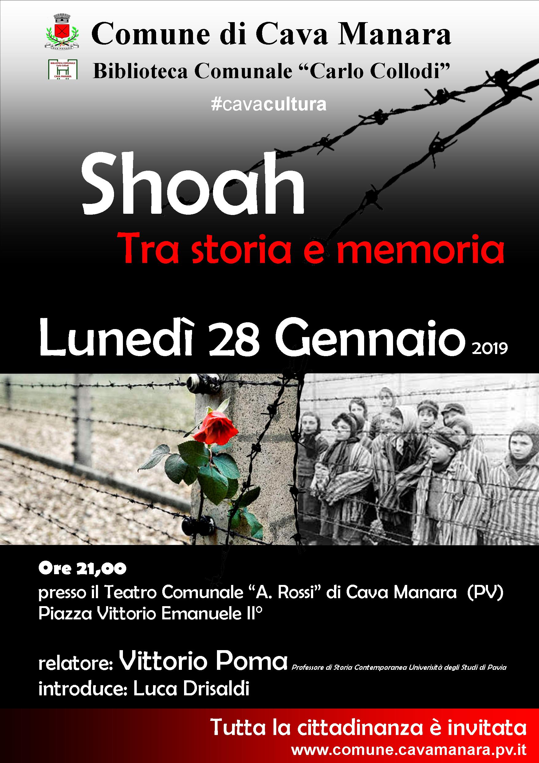 In occasione del Giorno della Memoria della Shoah, il Comune e la Biblioteca di Cava Manara "Carlo Collodi" nell'ambito della rassegna #Cavacultura, propongono una conferenza tenuta da Vittorio Poma, docente di Storia Contemporanea dell'Università degli Studi di Pavia, per ripercorrere la storia degli eventi e fornire spunti di riflessione su queste pagine della nostra storia nazionale.
