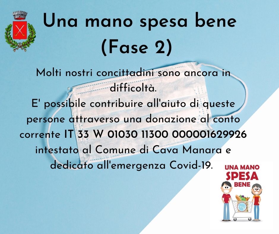 Si ricorda che è possibile contribuire ad aiutare i nostri concittadini in difficoltà attraverso una donazione al conto corrente dedicato all'emergenza COVID-19 e intestato al Comune di Cava Manara: