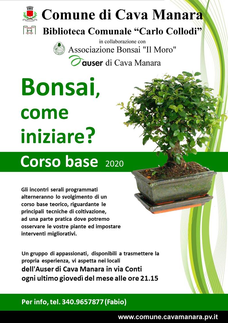 Il Comune di Cava Manara e la Biblioteca Comunale "Carlo Collodi" in collaborazione con l'Associazione Bonsai "Il Moro" e l'Auser di Cava Manara, organizzano per l'anno 2020 un corso base di bonsai.