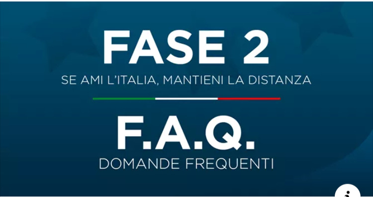 Pubblichiamo le risposte del Governo alle domande più frequenti in ordine alla “fase2” che prenderà avvio il prossimo lunedì 4 maggio 2020.
