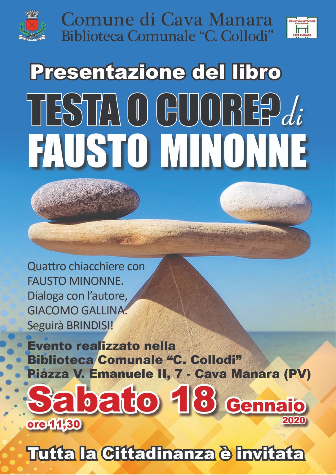Sabato 18 gennaio 2020 alle ore 11,30, presso la Biblioteca Comunale "Carlo Collodi" di Piazza V. Emanuele II, 7, verrà presentato il libro "Testa o Cuore"? di Fausto Minonne.