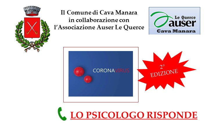 Il Comune di Cava Manara, in collaborazione con il centro Auser Le Querce, mette a disposizione per un mese, a partire dal 15 maggio 2021, uno Sportello d’Ascolto Psicologico online condotto dalla Dott.ssa Federica Noviello, Psicologa Psicoterapeuta.