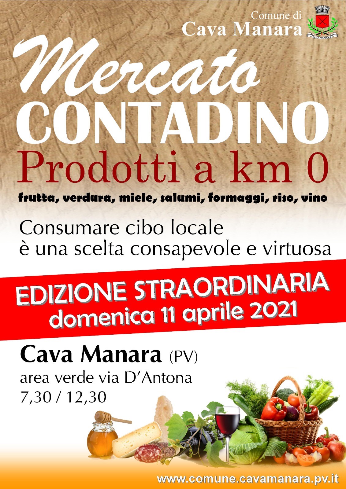 Domenica 11 aprile si terrà un’edizione straordinaria del Mercato Contadino di Cava Manara, non essendosi tenuto, come di consueto, la prima domenica del mese in concomitanza con la Pasqua.