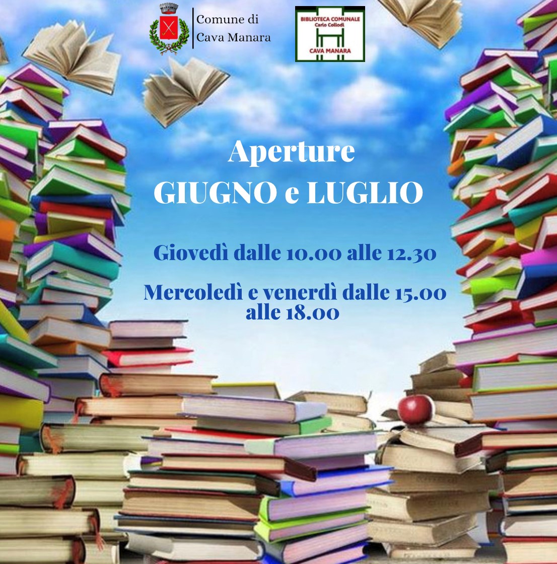 Si pubblica il calendario delle aperture della Biblioteca Comunale nei mesi di giugno e luglio.