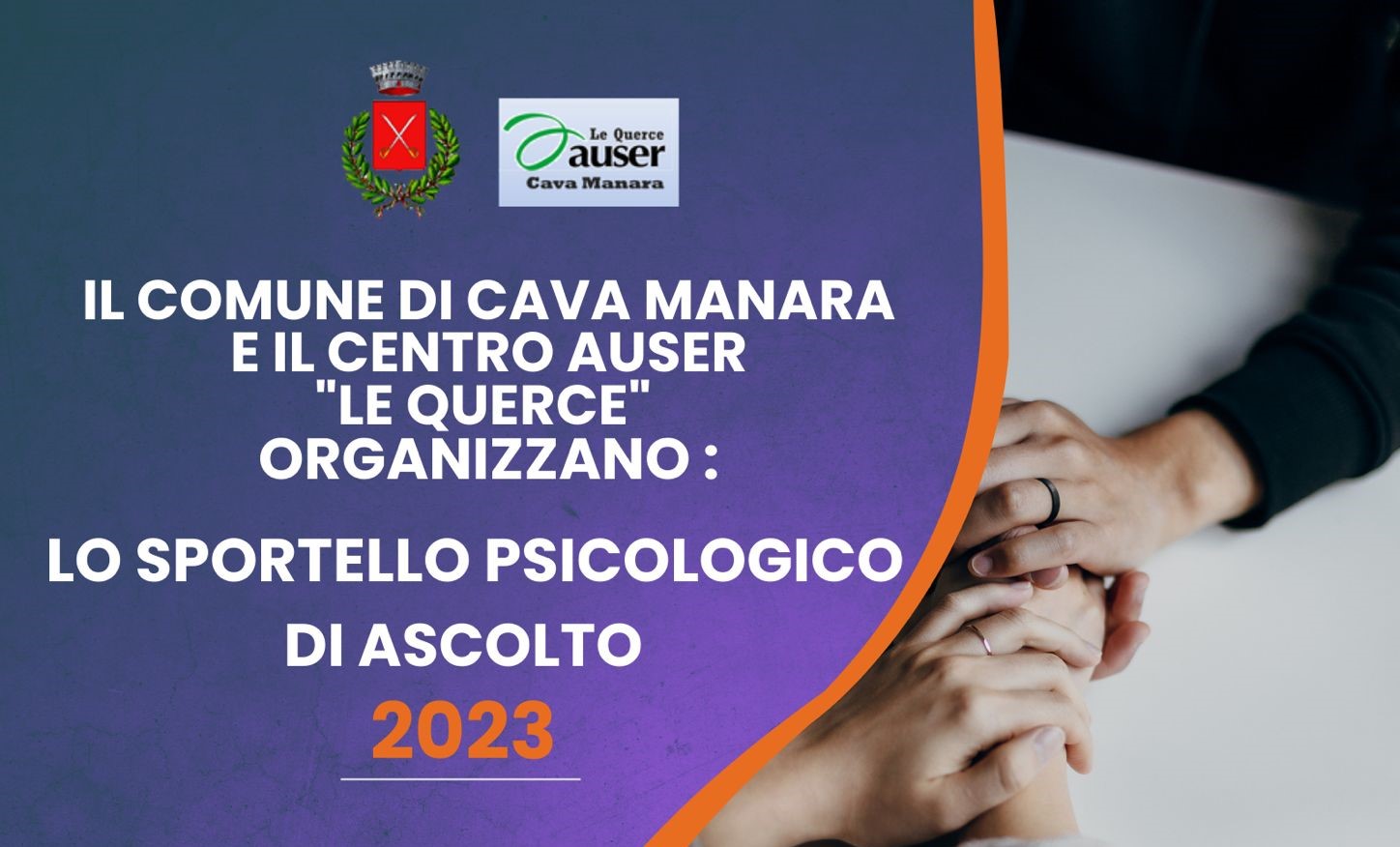 Il Comune di Cava Manara, in collaborazione con il centro Auser Le Querce, mette a disposizione a partire dal prossimo 10 maggio 2023, uno Sportello Psicologico d'ascolto presso la sede Auser in Via Conti a Cava Manara.
