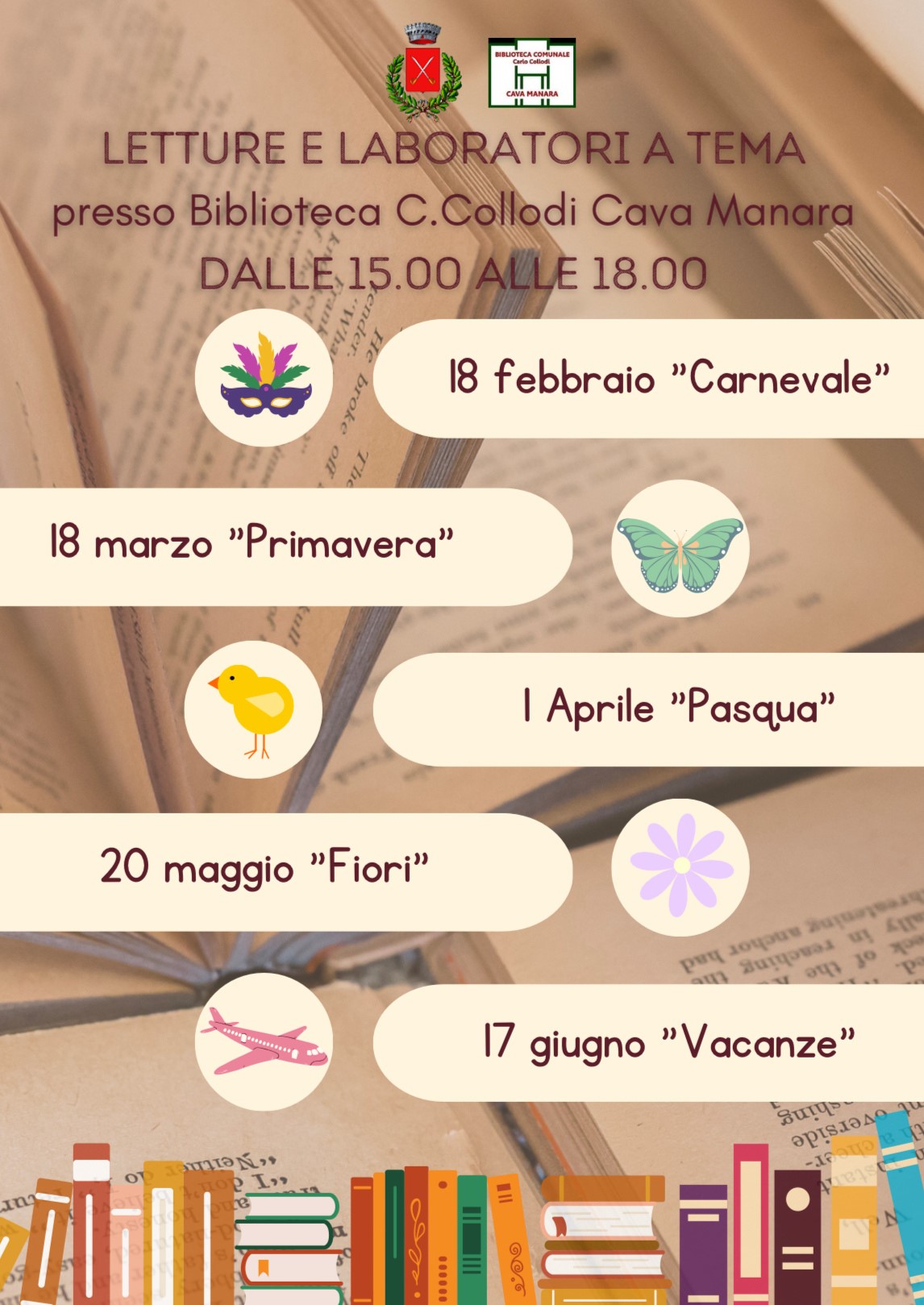 L'Amministrazione Comunale, in collaborazione con la Biblioteca Comunale "C. Collodi" organizza alcuni pomeriggi di letture dedicate ai bambini cui seguiranno laboratori creativi a tema.
