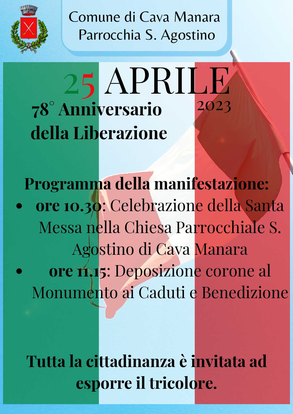 In occasione del 78° Anniversario della Liberazione, l'Amministrazione Comunale promuove la manifestazione celebrativa secondo il seguente programma: