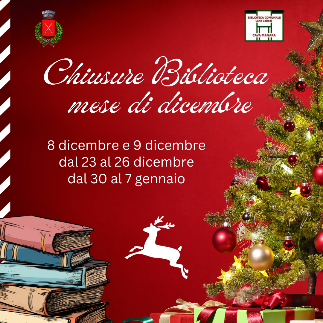Si avvisa la cittadinanza che la biblioteca comunale resterà chiusa nei seguenti periodi: