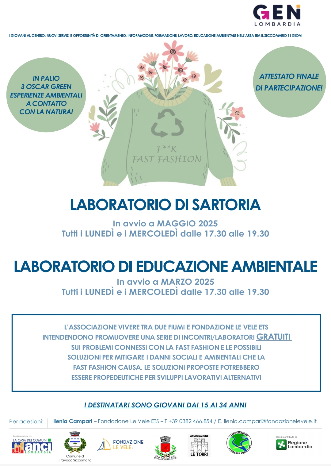 I laboratori sono organizzati dall'Associazione Vivere tra i due fiumi e dalla Fondazione Le Vele ETS. Sono completamente gratuiti e sono destinati ai giovani dai 15 ai 34 anni.